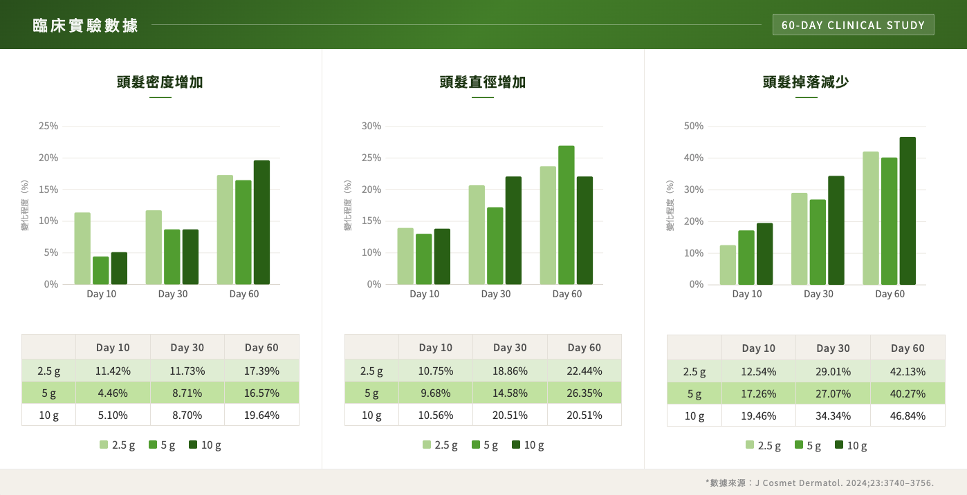 👉 綜合結果:頭髮生長速率提升約38–50%,密度與厚度約提升20%,顯示頭髮生長條件與環境改善。