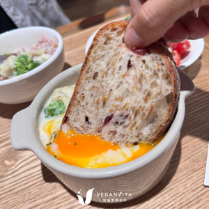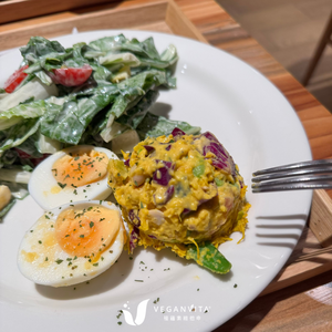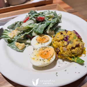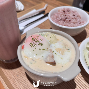 雖然菜單上寫植物五辛素,不過這麼大一顆半熟蛋,還是要提醒大家一下~