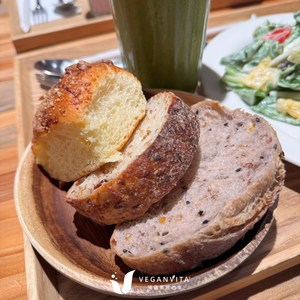 歐式麵包吃起來不會過乾,帶有些微濕潤感,可以搭配旁邊的南瓜沙拉泥一起享用,不過後來V小編發現拿去沾後面要介紹的野蔬奶油盅更搭 !