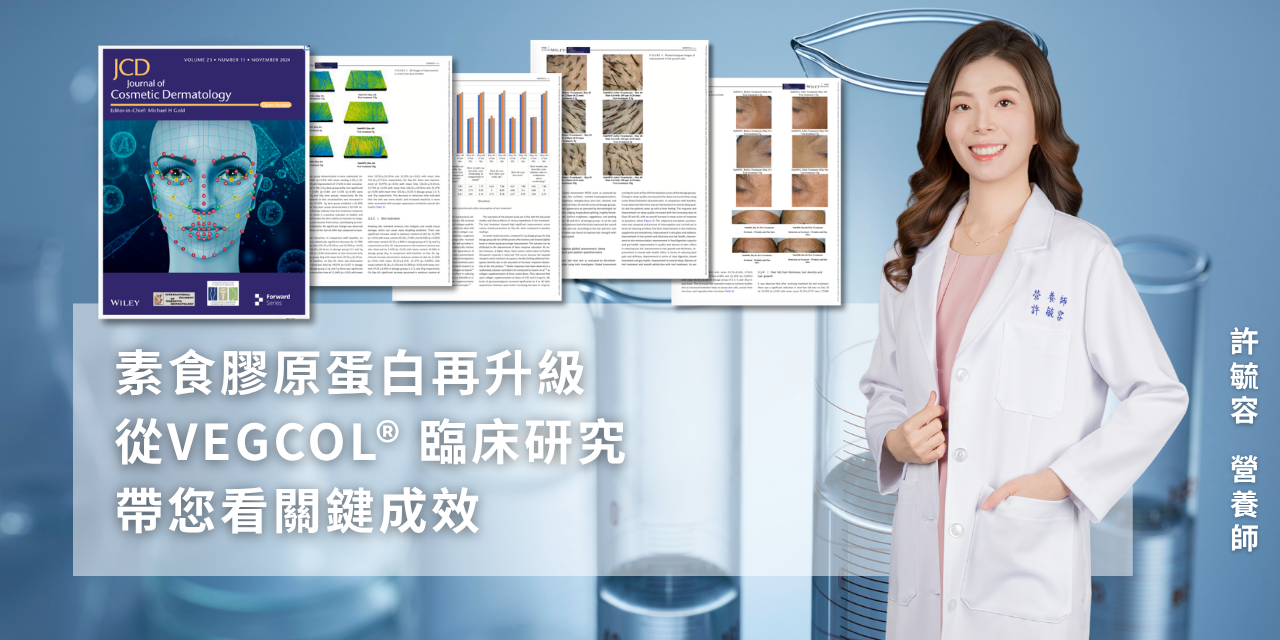 近年來「素食膠原蛋白」逐漸成為市場關注的焦點,從過去以魚、豬、牛等動物來源的膠原蛋白,到現在植物來源的選擇,大家開始在意的不只是來源,更是原料是否真的有研究支持其效果。隨著VEGCOL®的臨床研究發表,今天營養師帶大家了解VEGCOL®的研究成果! 什麼是VEGCOL®?VEGCOL® 是植物萃取物,更是經過設計的「膠原建構配方」,來源主要來自蔬菜(胡蘿蔔和青花菜),搭配酵素技術,提供人體所需的胺基酸組成。 VEGCOL®的三個設計核心:含有組成膠原蛋白關鍵胺基酸:甘胺酸-脯胺酸-羥脯胺酸(GPH)模擬人體第一型和第三型膠原蛋白的組成特性科學檢測含膠原三肽(CTP) 15.32%、甘胺酸-脯胺酸-羥脯胺酸(GPH) 5% 素食膠原蛋白VEGCOL® 臨床研究對人體的相關效益這篇研究於2024年發表在國際期刊《Journal of Cosmetic Dermatology》:素食膠原蛋白的臨床研究:從皮膚、頭髮、指甲和肌肉的整體變化解析Revitalizing skin, hair, nails, and muscles: Unlocking beauty and wellness with vegan collagen 研究人數:66位成人(30–50歲)實際完成:63人試驗時間:60天劑量設計:每日補充VEGCOL® 2.5g / 5g / 10g,每個劑量有22名受試者研究方法:在連續60天補充VEGCOL® 後,觀察每個劑量組別的皮膚彈性、水分、魚尾紋、細紋、指甲、頭髮、肌肉等多項指標變化,以及受試者對試驗治療的觀感評估。 補充60天VEGCOL® 研究結果:1.皮膚結構與穩定度相關指標魚尾紋減少:三個劑量組別分別減少49.94%(2.5g)、50.97%(5g)、53.16%(10g)皮膚彈性增加:三個劑量組別分別增加10.97%(2.5g)、13.71%(5g)、21.37%(10g)皮膚保濕增加:三個劑量組別分別增加3.63%(2.5g)、14.37%(5g)、22.39%(10g)👉 綜合結果:皮膚細紋指標下降約46–53%,平滑度提升約33%,代表皮膚整體結構穩定與細緻度明顯改善。 2.頭髮相關指標頭髮密度增加:三個劑量組別分別增加17.39%(2.5g)、16.57%(5g)、19.64%(10g)頭髮粗細增加:三個劑量組別分別增加22.44%(2.5g)、26.35%(5g)、20.51%(10g)落髮減少:三個劑量組別分別減少42.13%(2.5g)、40.27%(5g)、46.84%(10g)👉 綜合結果:頭髮生長速率提升約38–50%,密度與厚度約提升20%,顯示頭髮生長條件與環境改善。 3.肌肉與日常狀態指標肌肉力量增加(俯臥撐):三個劑量組別分別增加65.14%(2.5g)、66.98%(5g)、60.17%(10g)疼痛和僵硬程度減少:三個劑量組別分別減少47.45%(2.5g)、41.58%(5g)、52.54%(10g)👉 綜合結果:肌力表現提升約30–60%,不適感下降約40–50%,代表身體支持能力與活動穩定度提升。 研究結論:1.純素膠原蛋白VEGCOL® 有效改善多種與年齡相關的肌膚問題,例如皺紋、細紋、關節疼痛、肌肉力量和頭髮生長。2.所有受試者的主觀感,都認為該產品有助於改善皮膚、頭髮和指甲的美觀。 為什麼膠原蛋白「每日5g」會是關鍵?這篇研究最有價值的地方,是有做出VEGCOL® 不同劑量的比較,不是越多越好,而是「達到有效區間」最重要!這正是為什麼「每日5g」會成為一個關鍵設計。綜合研究結果發現:• 2.5g 已可產生明顯變化• 5g 在多數指標達到穩定效果• 10g 並非所有數據都更好 新一代的VEGCOL® vs VECOLLAL® :差異在哪?VEGCOL® 和 VECOLLAL® 都是萃取植物來源的胺基酸,仿人體第一型膠原蛋白的構造,兩者主要的差異關鍵,在於臨床研究結果與科學檢測。過去幾年,素食膠原蛋白一直存在一個問題,有概念,但是缺乏完整科學數據,雖然VEGCOL® 和 VECOLLAL® 都有臨床研究,但是VEGCOL® 的研究建立「有效劑量區間」與「多面向試驗」,也就是針對不同劑量來分析對於皮膚、頭髮、肌肉等結果,所以透過研究數據,我們可以更清楚知道應該要補充多少劑量。VEGCOL® 讓「素食膠原蛋白」不再只是趨勢,而是開始進入有更多科學依據的階段。 VEGCOL® 和 VECOLLAL® 的比較表 營養師小結語:VEGCOL® 讓素食膠原蛋白做出更有依據的選擇保養從來不是補得越多越好,而是建立在「有依據的選擇」上。從這篇臨床研究可以看到,素食膠原蛋白的發展,已經從概念走向實證,關鍵不再只是來源,而是是否具備明確的劑量設計與科學支持,而在多劑量比較中,「每日5g」逐漸成為一個穩定且可被驗證的補充區間,不是追求更多,而是回到剛剛好的平衡。在選擇素食膠原蛋白時,與其比較成分多寡,不如回到更關鍵的三件事:1.是否有臨床研究支持2.是否有清楚的劑量設計3.是否適合長期穩定補充 當素食膠原蛋白補充開始有邏輯、有數據,就不再只是短期嘗試,而是一種可以長期安心的日常選擇。 ✦ ✦ 作者介紹: 許毓容 營養師營養師介紹:VEGANVITA 植蘊素維他命的營養師團隊