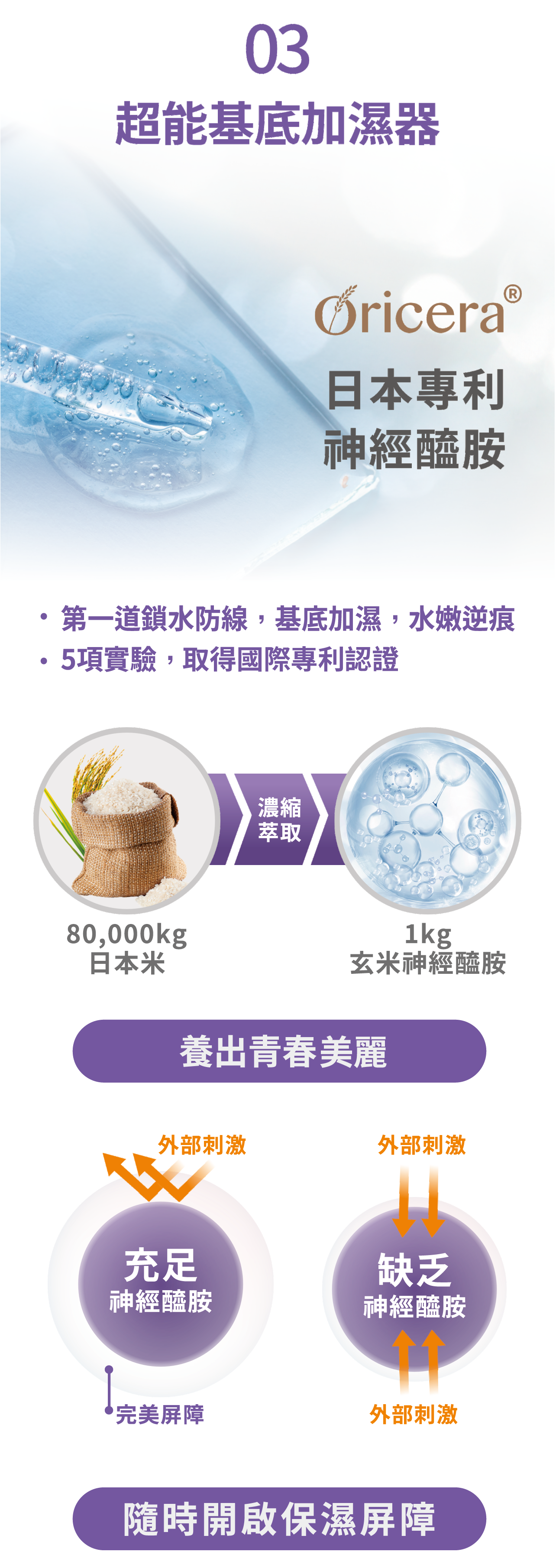 • 水嫩細緻:日本Oricera®專利神經醯胺